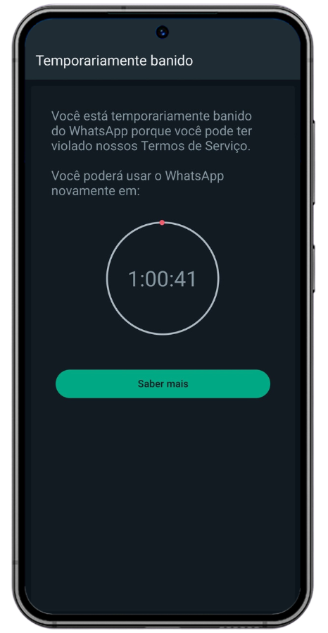 • O que você vê: “Esta conta está impedida de usar o WhatsApp”.